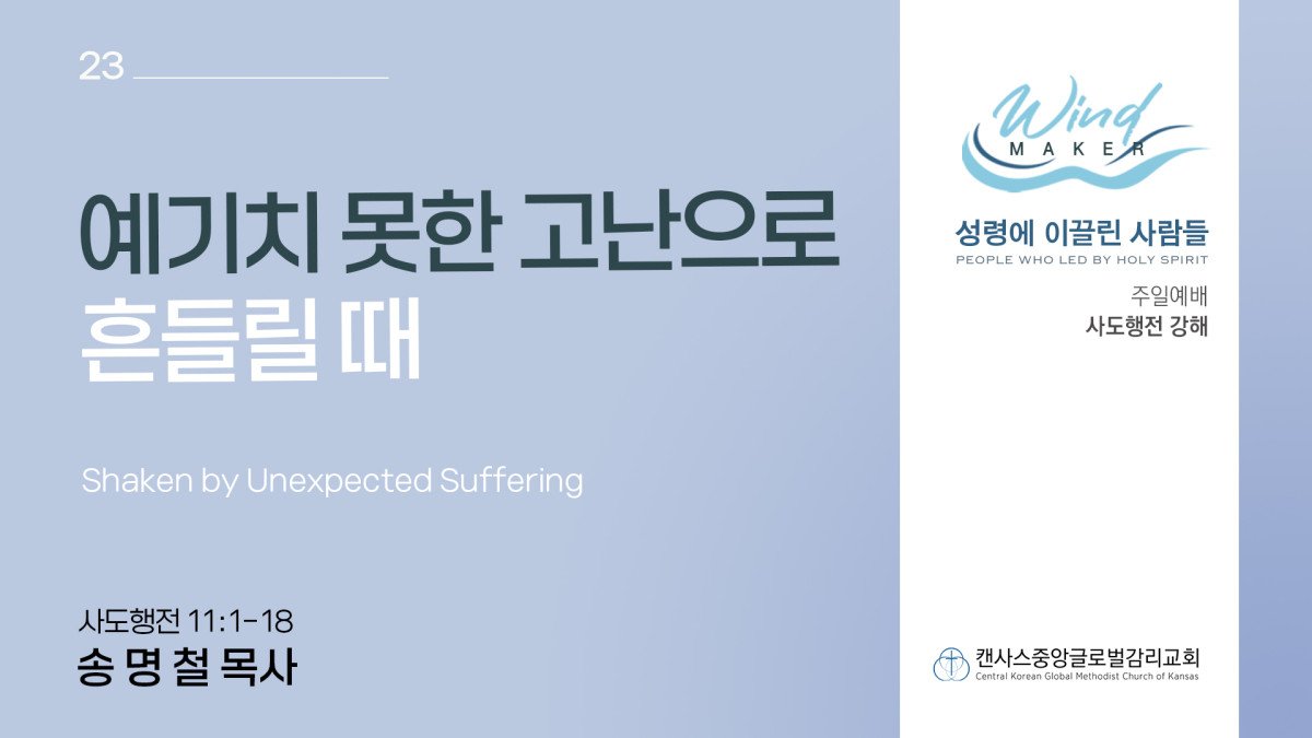 2025-10-12 캔사스한인중앙글로벌감리교회 주일예배 설교 예기치 못한 고난으로 흔...