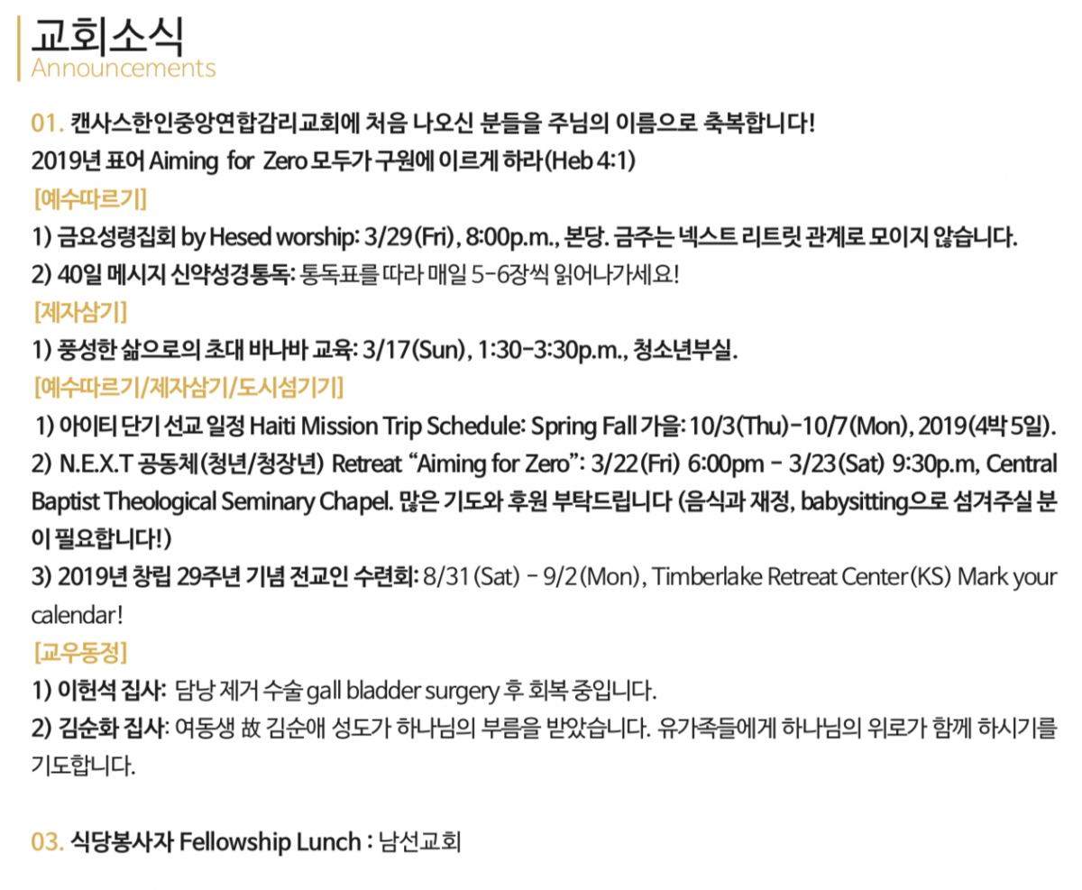 남선교회 (믿음으로 사는 남자들) Men Living by Faith