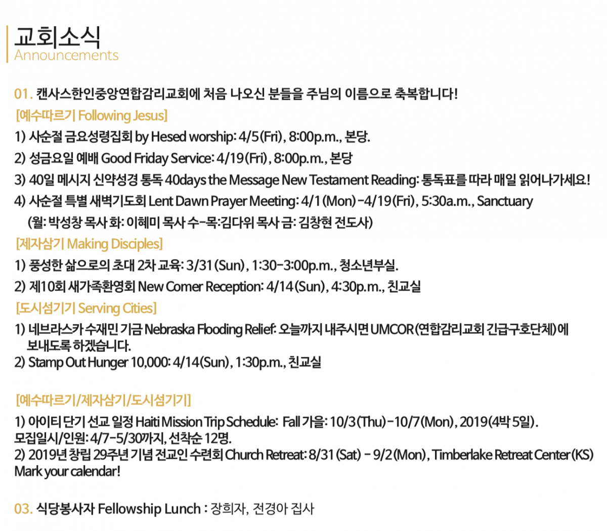 남선교회 (믿음으로 사는 남자들) Men Living by Faith