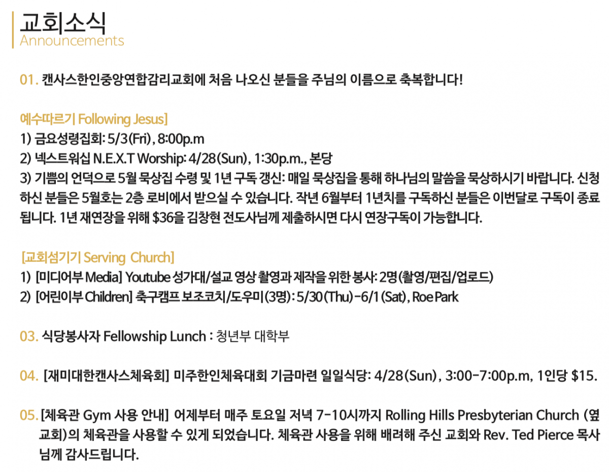 남선교회 (믿음으로 사는 남자들) Men Living by Faith