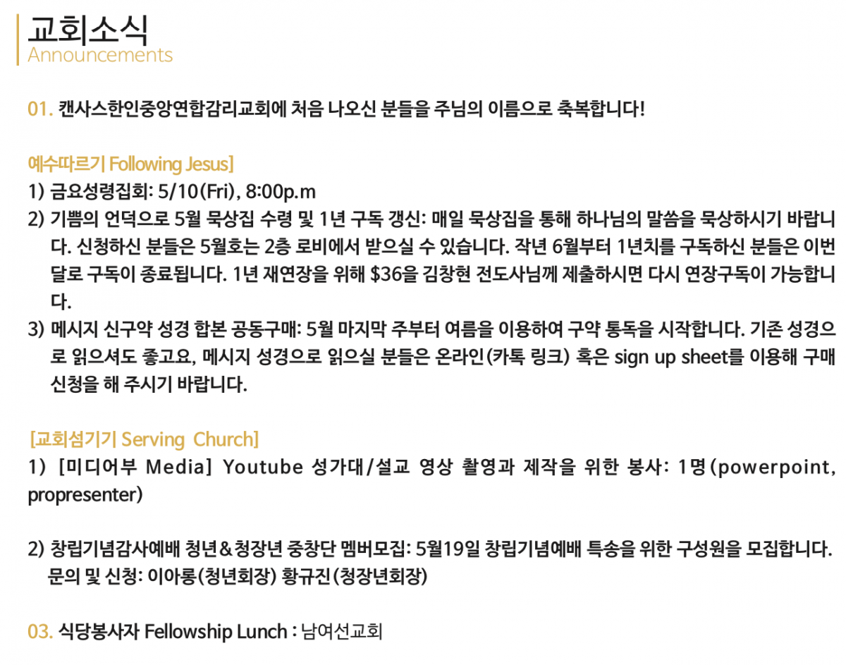 남선교회 (믿음으로 사는 남자들) Men Living by Faith