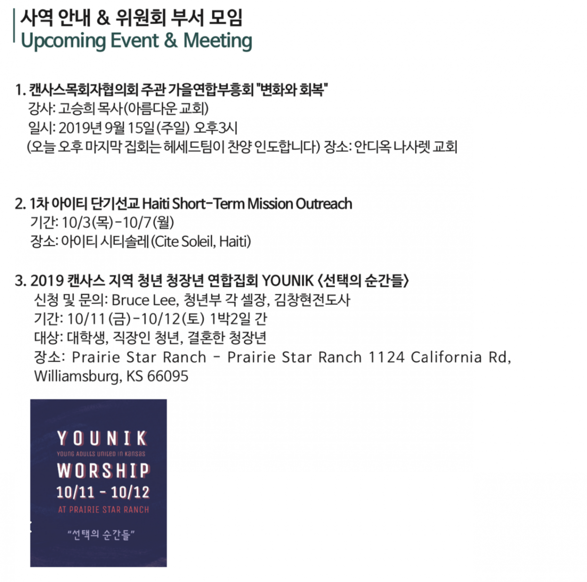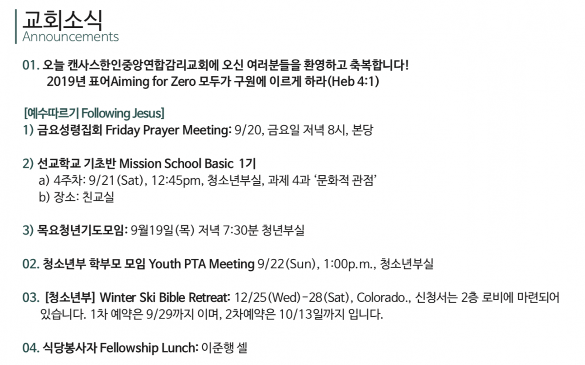 09.15.2019 교회소식