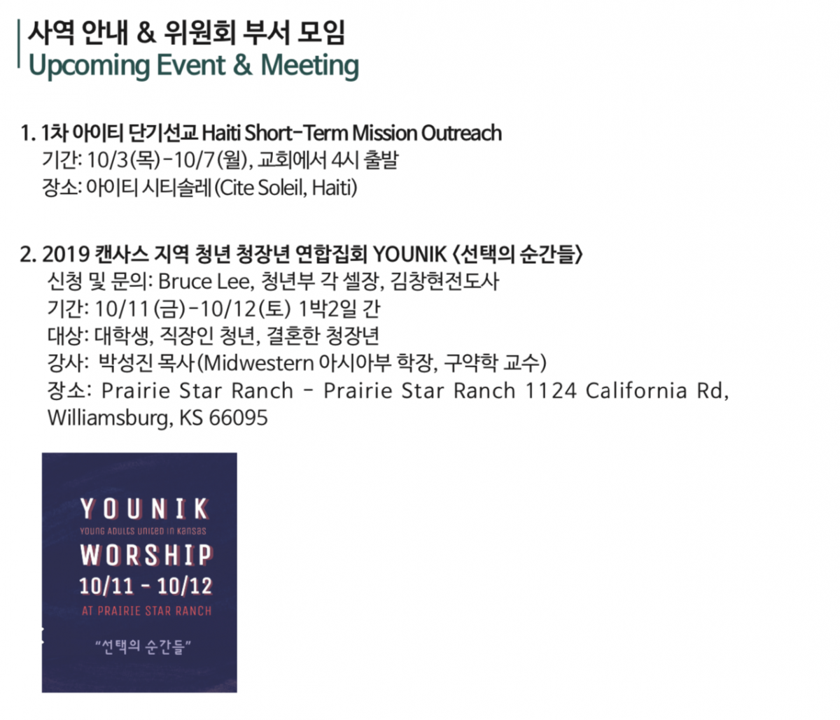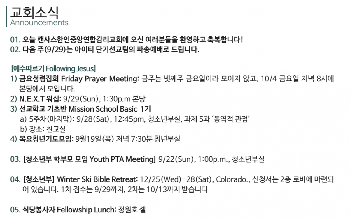 09.15.2019 교회소식