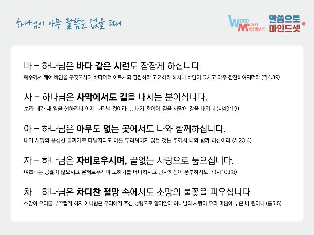 하나님이 아무 말씀도 없을 때 "묵상할 말씀"