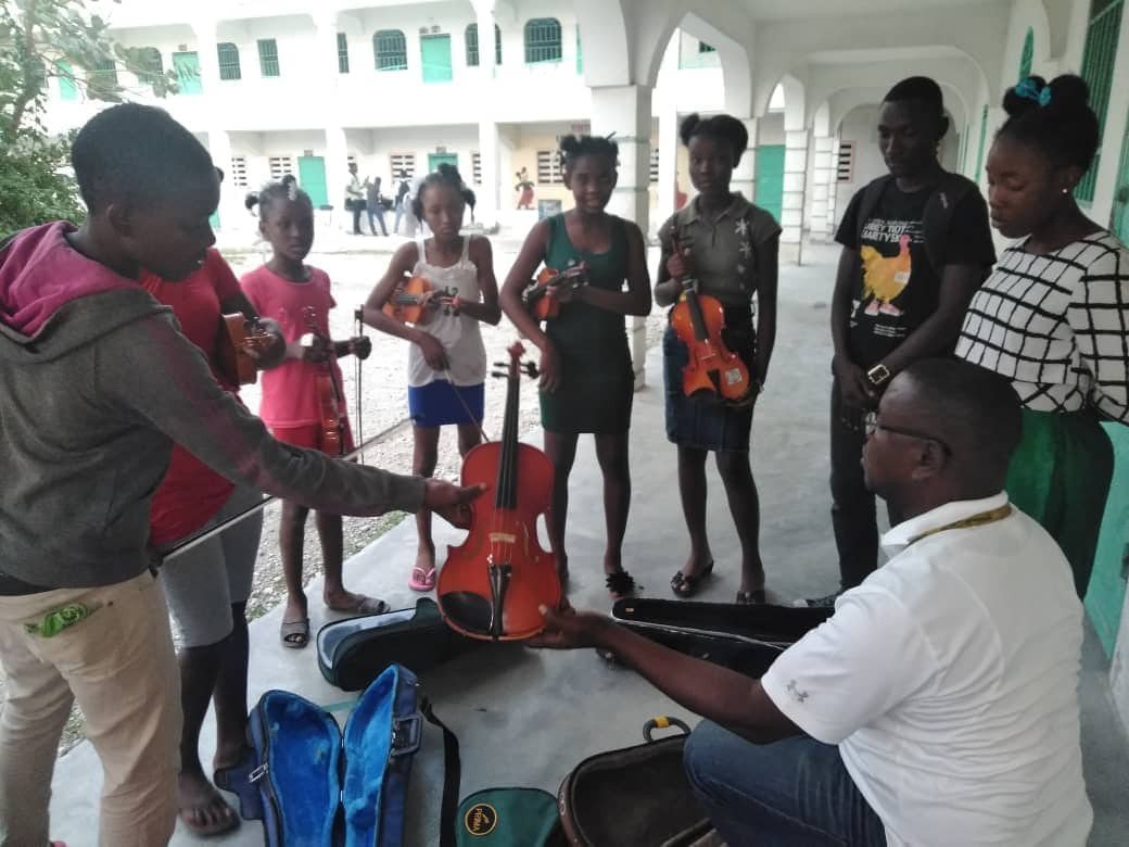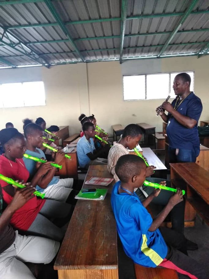 미국에서 전달받은 악기들로 학생들은 악기를 접해보며 연습합니다. 악기라는 것을 처음보고 그 소리를 처음 들어보는 학생들이 대부분이지요.