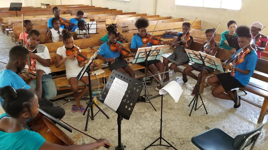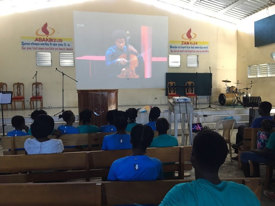 저희가 방문하였을 때도 여전히 아이티 반정부 시위가 계속 진행중이어서 모든 초,중,고 학교가 휴교 중이었습니다. 그래서 학생들은 매일 아침부터 음악학교에 모일 수 있었고 집중적으로 음악을 배우는 시간이 되었습니다.  이번에는 연주자들 동영상도 틀어주고, sound of music 영화도 함께 보았습니다. 전기사정이 좋지 않아 영상을 접할 기회가 많이 없는 아이들은 너무나 좋아하였고 매일 아침 기대와 기쁨 가득한 얼굴로 음악학교에 나왔습니다.